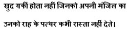 In conclusion, I take this opportunity to once again thank you with all humility, for the unstinted support you have extended to me at every stage. Your cooperation had always been forthcoming and was a source of great strength for me. I will demit office of the President on 25th of July but your respect, love and affection will always remain with me as fond memories. All of you must continue with your work with a sense of purpose and steadfastness to reach your goal. Without a goal, obstacles are difficult to overcome. Lok Sabha Speaker, Shrimati Meira Kumarji is very good at reciting shero-shayari. Therefore, motivated by her, I will recite a couplet in this context: